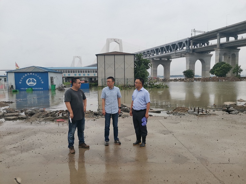 沿著長江防洪大堤,方曉同志一邊檢查一邊聽取項(xiàng)目施工單位防汛工作匯報。目前,施工單位中鐵大橋局項(xiàng)目人員已有序撤離危險區(qū)域、工程資料已經(jīng)妥善安置,并與屬地政府、所在街道組成防汛值班隊(duì)伍,安排人員24小時現(xiàn)場值班,并組建了一支50人的突擊分隊(duì)隨時應(yīng)對突發(fā)險情。