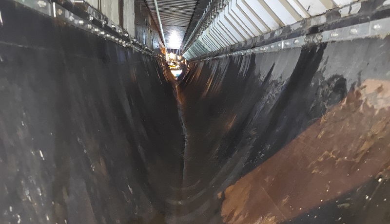 蕪湖長(zhǎng)江三橋主橋0#、5#墩處采用最大伸縮量為1200mm的梳齒形伸縮縫,齒間距約50mm,通過(guò)橡膠止水帶收集雨水后排至兩側(cè)雨水斗進(jìn)入雨水系統(tǒng)。自三橋通車以來(lái),車輪及雨水裹挾泥沙由梳齒間隙進(jìn)入伸縮縫,止水帶內(nèi)存有不少泥沙和雜物。隨著時(shí)間的推移,止水帶內(nèi)積沙積泥載荷增大,將會(huì)對(duì)正下方高鐵運(yùn)行產(chǎn)生威脅。為及時(shí)消除安全隱患,大橋公司路產(chǎn)安全部養(yǎng)護(hù)人員組織外協(xié)單位多次前往現(xiàn)場(chǎng)確定清理方案及安全防護(hù)措施,并在公司領(lǐng)導(dǎo)帶領(lǐng)下及時(shí)對(duì)接鐵路蕪湖工務(wù)段,申請(qǐng)高鐵運(yùn)行天窗期開(kāi)展專門(mén)清理工作。