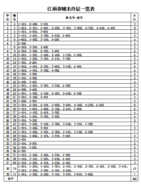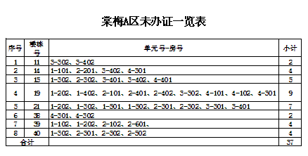 由原益安公司和市建投公司負責拆遷和安置的安置戶,安置房辦證工作開展已經(jīng)近三年了。截止目前,還有少部分樓棟號的安置戶(具體樓棟號詳見附表)至今未來辦理辦證手續(xù)。請你們于12月31日前,來我公司辦理相關的辦證手續(xù)。若因安置戶自身原因拖延未辦理各項辦證手續(xù)的,今后由此產(chǎn)生的辦證不便和麻煩,由各安置戶自行承擔。如有疑問或不清楚的請咨詢我公司,咨詢電話:5992137,5992136。